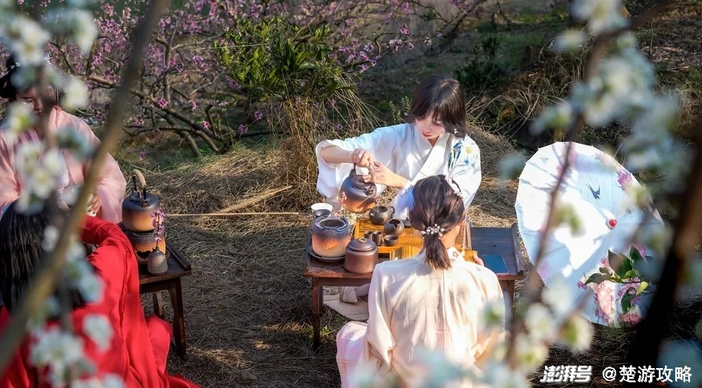 从春暖花开时,柃蜜小镇的三谷一山美如仙境。漫天粉红樱花落英缤纷,轻盈洒脱,桃花也从山间探出头张望,一园春色关不住,算是完成了春天的使命。