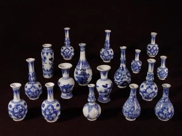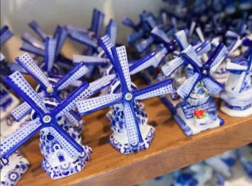 17世纪的晚期,荷兰贵妇们流行用微缩玩具来展示自己的审美与兴趣爱好,所以,一系列的微型家具、玩偶等就应运而生,这其中,当然少不了当时绝对身份的代表 —— 中国的青花瓷!于是,这些尺寸平均都在10厘米左右的精巧小瓶子们就漂洋过海,成为了荷兰贵妇们展柜中精致的藏品。所以今天在荷兰大街小巷都能看到的蓝陶风车、蓝陶木鞋、亲吻小娃,甚至是荷兰皇家航空商务舱赠送的代尔夫特蓝陶小房子,都是现代微缩娃娃瓷的精美代表。