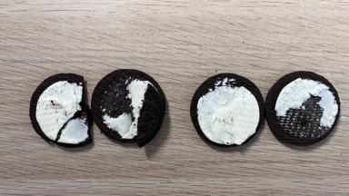 研究者先用手工扭动的方式处理了一小包奥利奥。发现没有一块奥利奥夹心能被平均分开。有时还会出现饼干破碎等意外。
