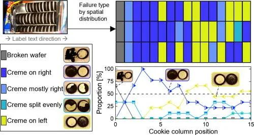 用这样的方式,研究者轻松扭开了一整包家庭装奥利奥,虽然还是没有一片奥利奥被均分。但数据结果有规律可循:靠近包装袋左侧的奥利奥,扭开后奶油更容易粘在右边的饼干上,靠近包装袋右侧的奥利奥则恰好相反。这意味着,奥利奥在包装袋中的位置会影响夹心和饼干的粘度,这可能与每块饼干所受的压力和温度条件有关。