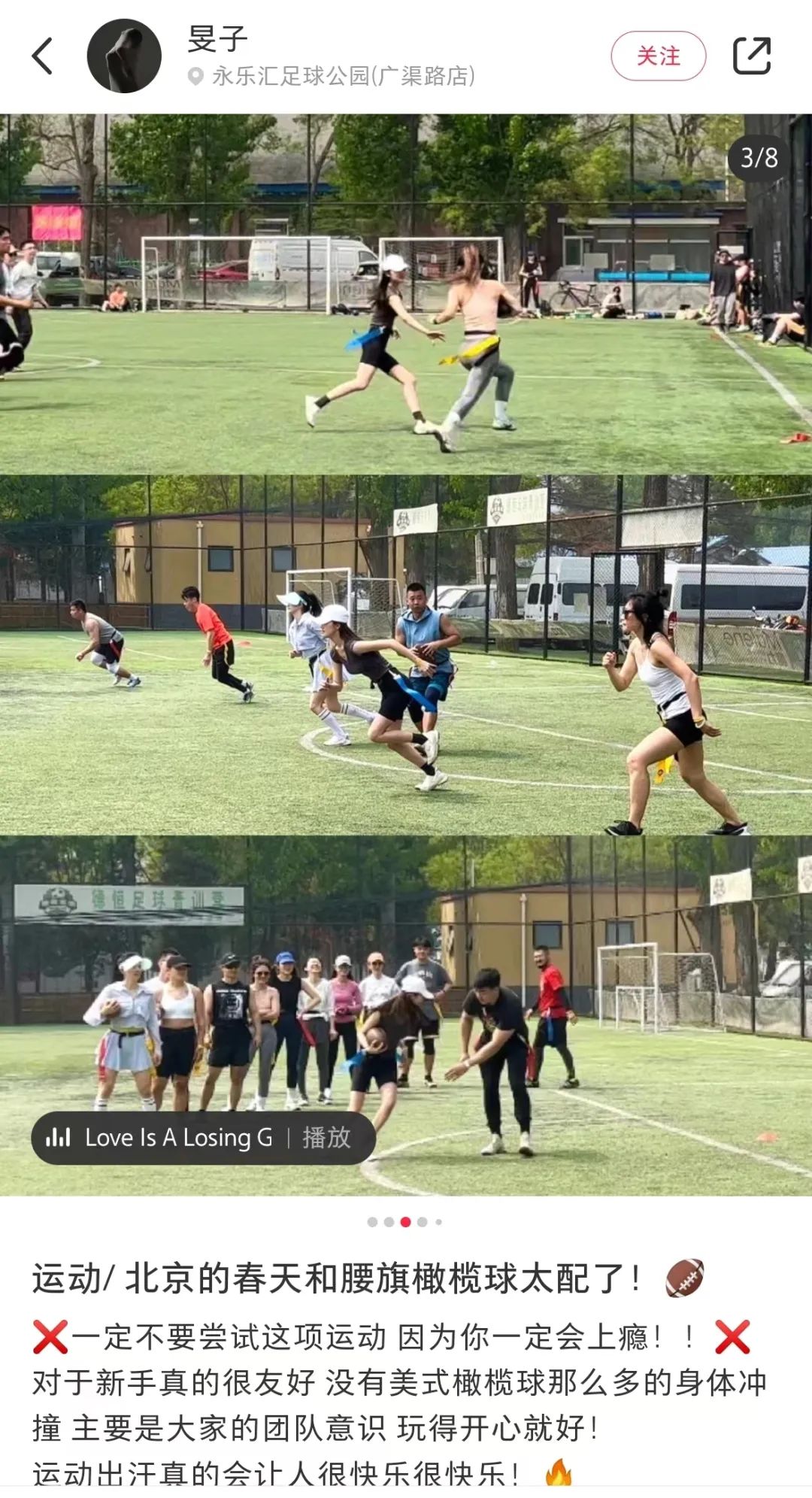 运动社交,年轻人的都市病解药大多数人接触腰旗橄榄球的契机无非两种,一是受健身社群中的朋友推荐,二是看到社交媒体上的体验分享,因为觉得好奇或者有趣决定尝试。