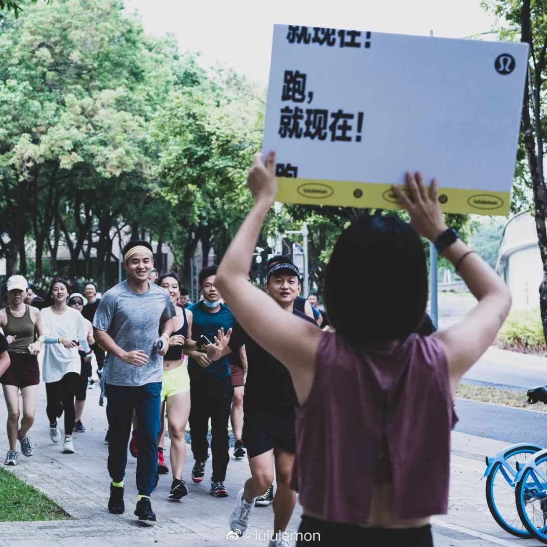 lululemon的一场线下活动。/微博@lululemon尤其疫情之下,基本上没有太多的大型体育活动,运动品牌们就更愿意把预算转为举办小的社区活动。Nike便运营着不少线上线下社群,每周都会组织不同路线和强度的夜跑活动,培养了很多死忠粉。