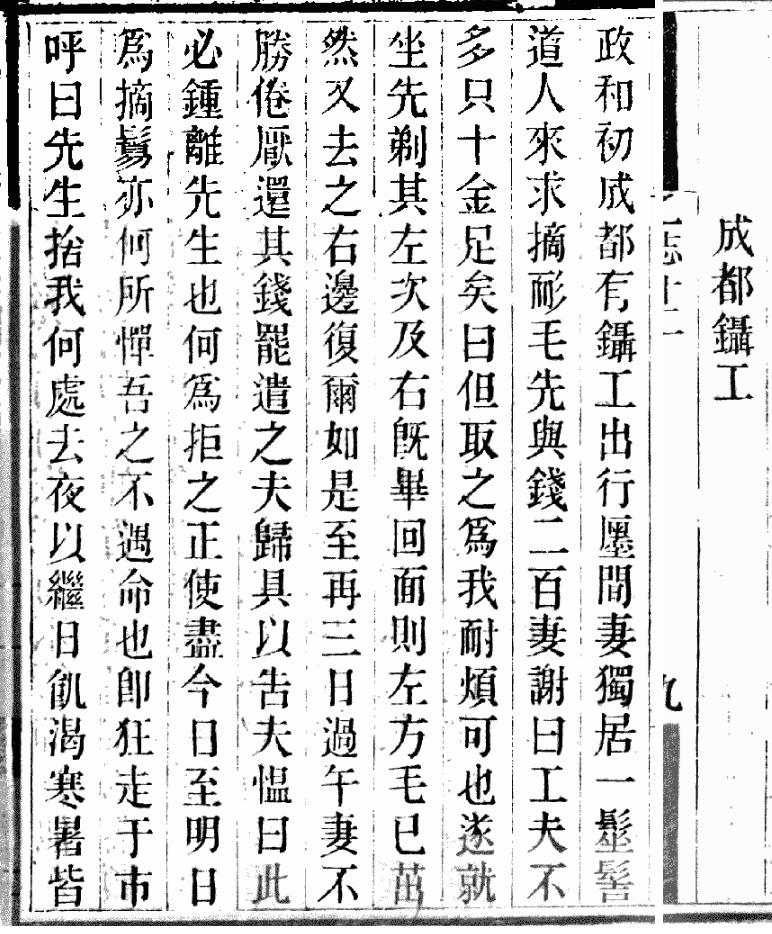 宋以后,市井中的理发业已粗具规模。宋代洪迈所编著的《夷坚志》(卷十二)中就有一节《成都镊工》,其中记载:“政和初,成都有镊工,出行尘间,妻独居,一髯髻道人来求摘须毛,先与钱二百……”宋代周密所著《武林旧事》中也有关于“净发社”的记载。清兵入关后颁“剃发令”,将原有的“束发为髻”改为“剃发留辫”。