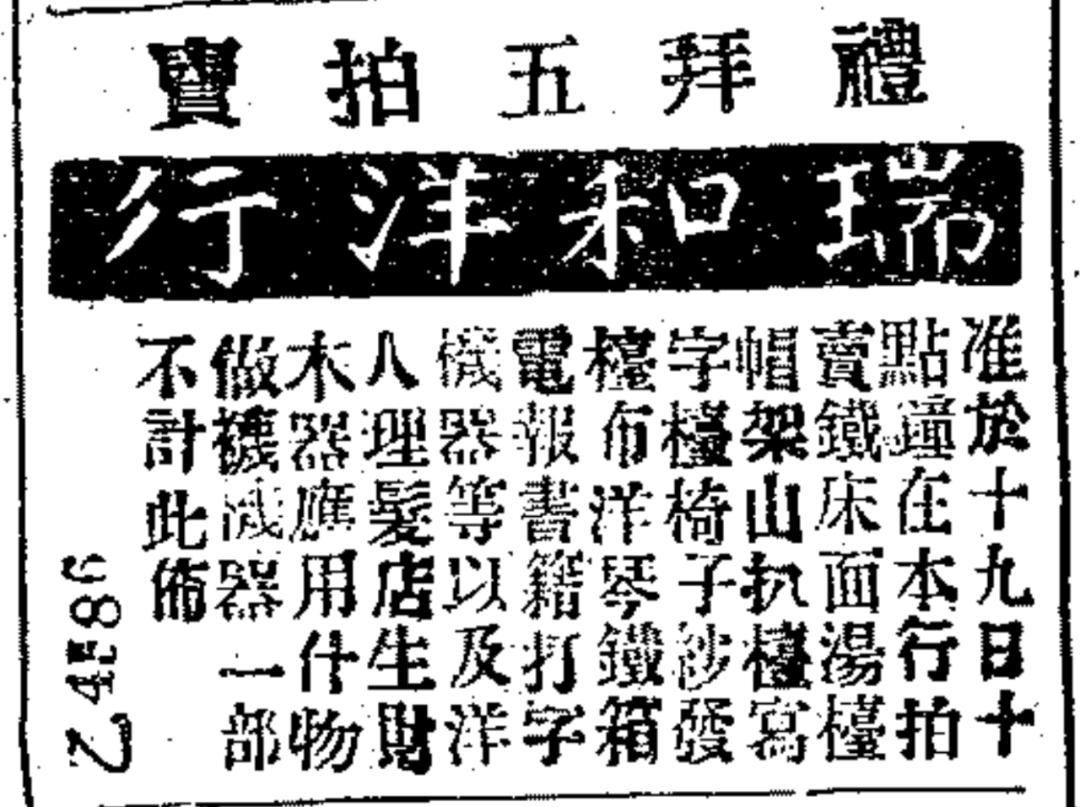 1909年9月3日《申报》刊发的一则洋行拍卖告示,其中就有理发店用品