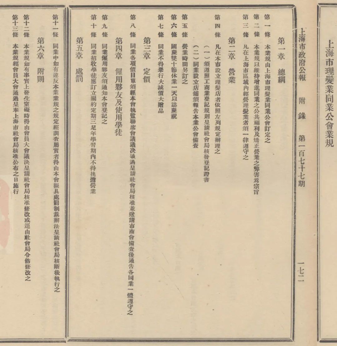 1937年上海市政府公报附录中的《上海市理发业同业公会业规》