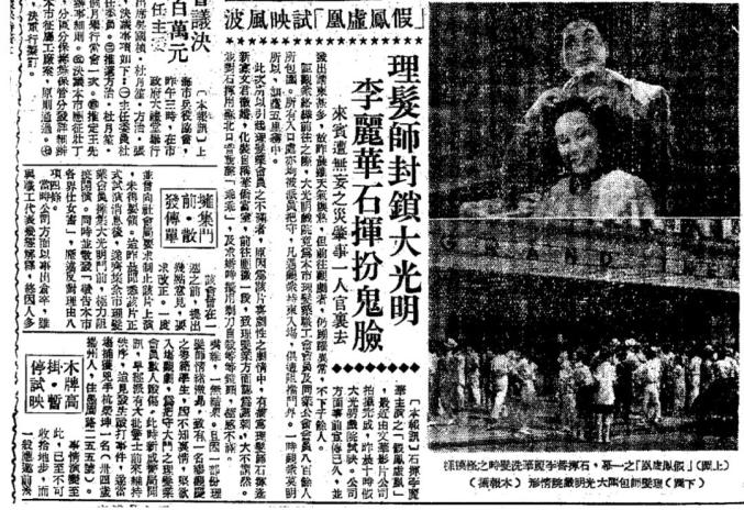 当年上海媒体上的报道,《假凤虚凰》引沪上理发业抗议,主演李丽华和石挥烫头理发都被迫换地方