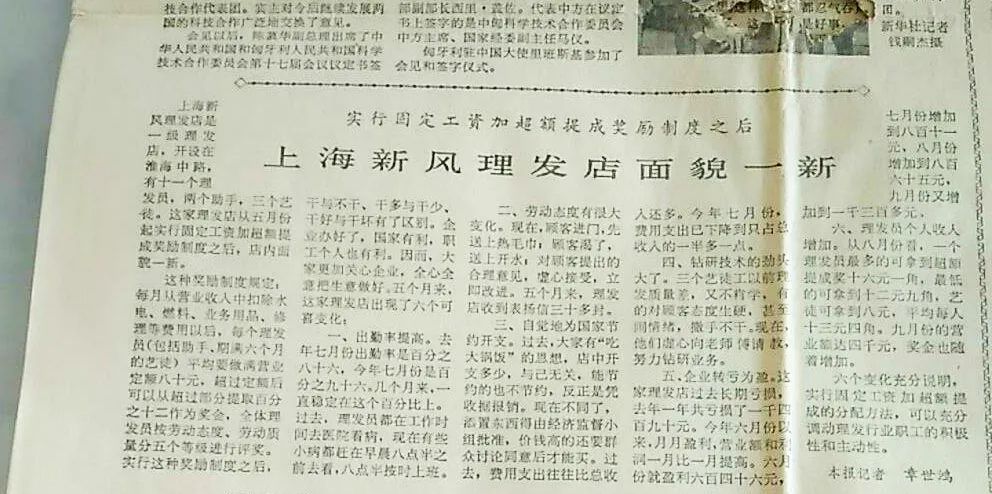 1978年11月13日,《人民日报》刊发上海新风理发店理顺激励机制,面貌一新的报道