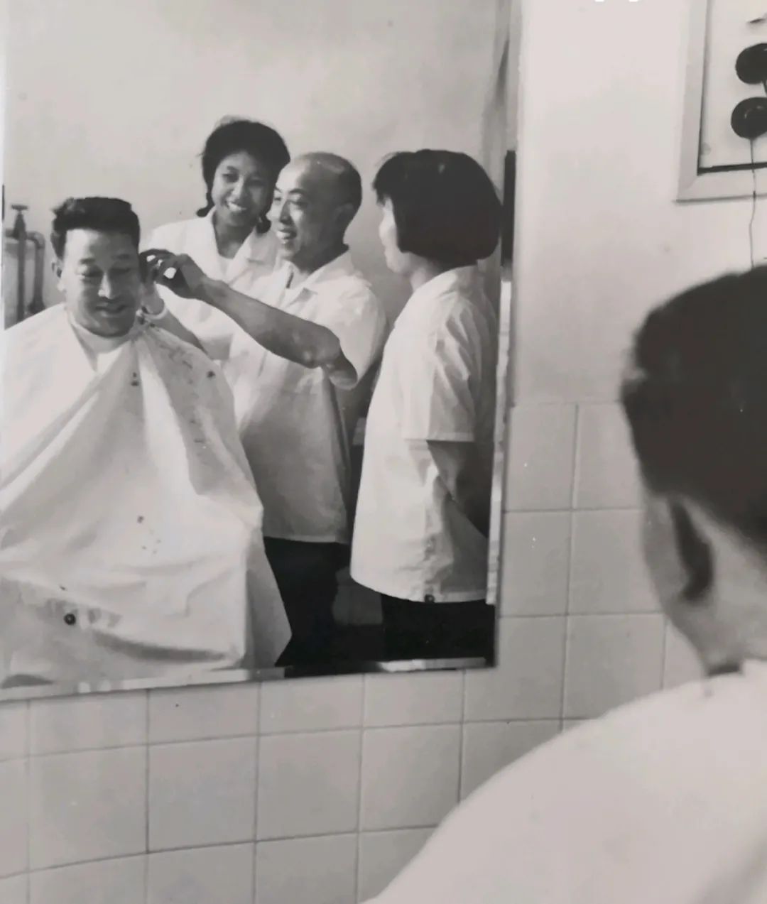 1962年,上海天马电影制片厂拍摄的喜剧电影《女理发师》,刻画了一位家庭妇女,冲破旧思想的束缚,积极投身到服务性行业,成为出色的女理发师的过程。由王丹凤、韩非、顾也鲁等主演,丁然导演也正是在20世纪50年代开始,上海的理发师傅还走南闯北,开枝散叶。1956年春天,一趟载着108位上海理发师的列车正驶向北京,这些师傅都来自于上海的华新、紫罗兰、云裳和湘铭四家名店,是在周恩来总理的安排下,带着火车托运的烧水锅炉、美国进口的理发转椅以及一应理发用具来到北京,在王府井东安市场北门的金鱼胡同开设了“四联”理发馆,意为“四家联合”,这也是上海服务业支援北京的重要组成部分。当时,相对于其他理发室4角钱的消费,在四联理发的8角钱可谓是“高消费”,烫发更是要2元2角。但在进口大皮转椅上舒舒服服地坐下,再经过洗发、理发、刮脸、吹风的成套服务,清清爽爽地走出大门。这一连串的享受,吸引了当时的人们勒紧裤腰带也要前去感受一二。