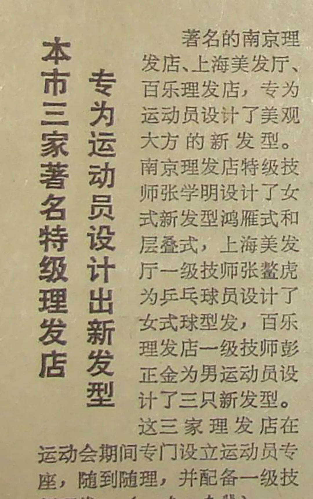 1983年8月27日《解放日报》刊发消息,介绍上海三家著名特级理发店为参加全运会的运动健儿设计新发型