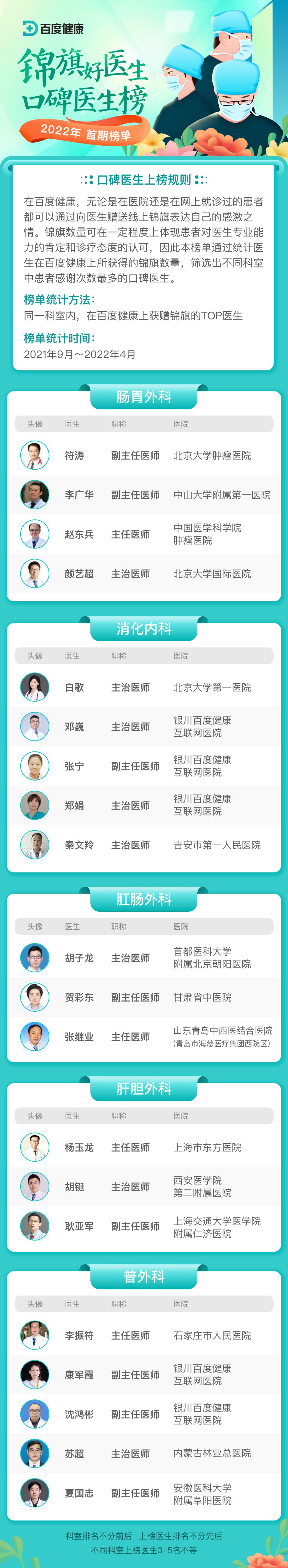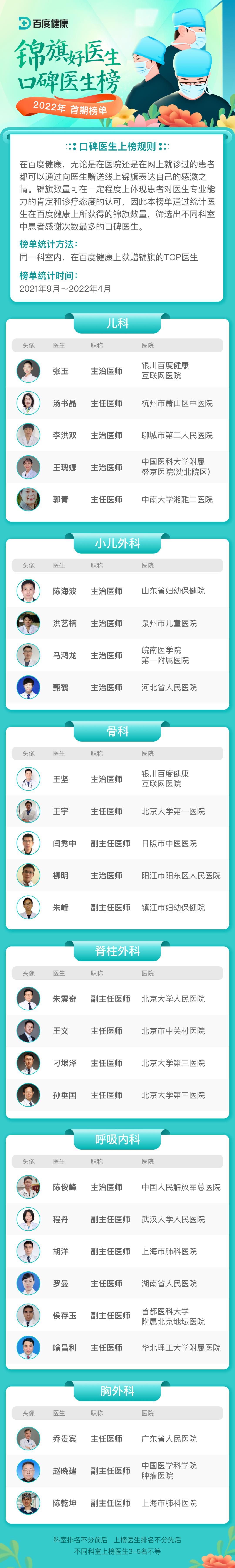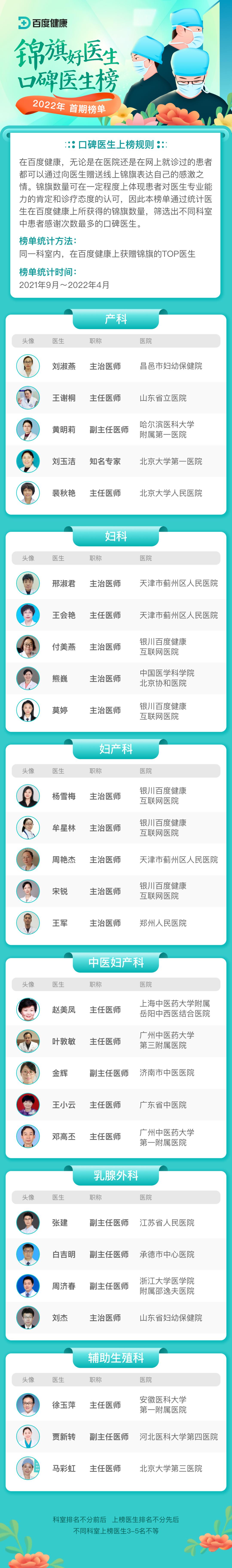 本次榜单共遴选出42个重点科室,174名口碑好医生。让我们一起来看看都有哪些优秀医者上榜!