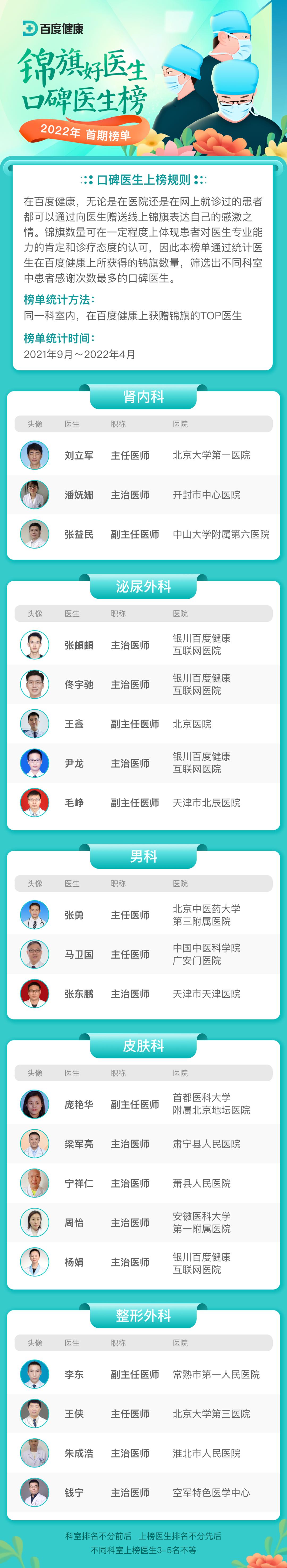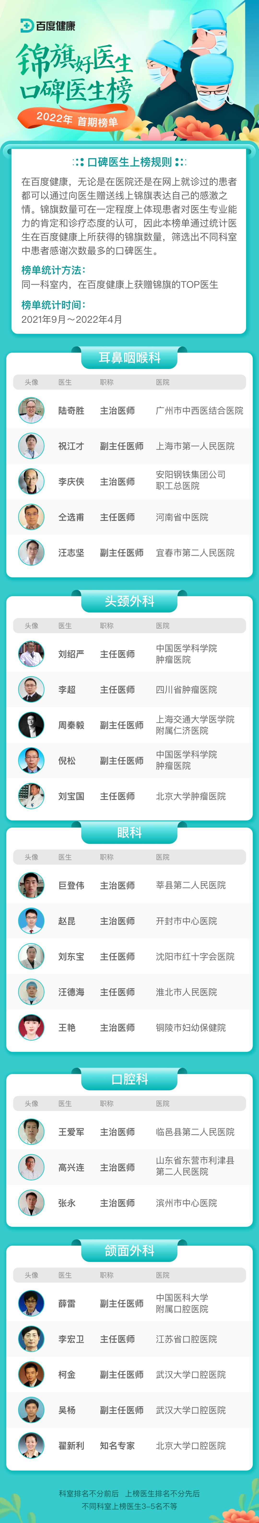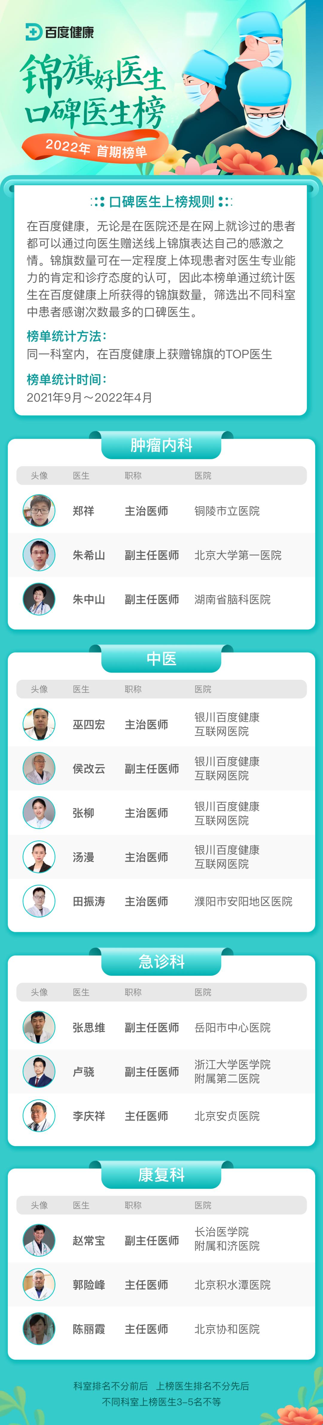 本次榜单共遴选出42个重点科室,174名口碑好医生。让我们一起来看看都有哪些优秀医者上榜!