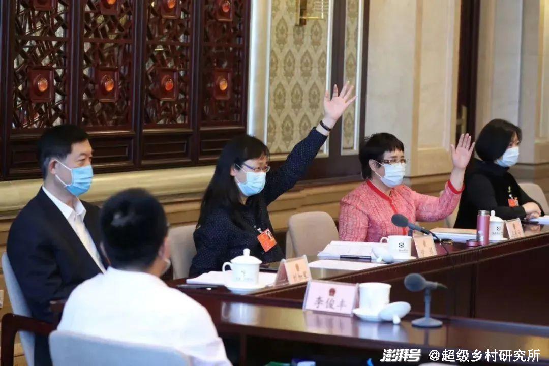 2020年5月,十三届全国人大三次会议期间,全国人大代表冯乐平(右二)在北京代表团小组会上。图源/全国人大