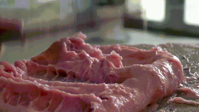 而之所以这么有弹性也是因为淮安人的精致,不用刀剁,只用铁棍拍打成肉糊,一口一个还能爆汁!