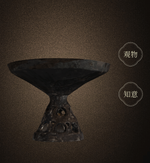 新石器时代大汶口文化的陶器,器型为豆,形如高足盘,足部装饰有圆形镂孔。豆,是古代的一种盛食器,也作为礼器使用。该器物表面光滑平整,造型精巧,代表了黄河流域大汶口文化先民高超的制陶工艺。