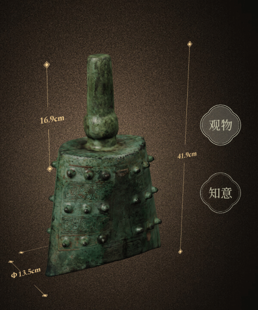 中国早期文明的一大特点是礼乐文化繁盛,因而乐器是礼器的一个重要组成部分。早在新石器时代陶寺遗址,乐器主要发现于高级贵族大墓,体现了乐器的不凡地位。甬钟是周代青铜乐器,属打击类器类,合瓦形结构。此甬钟顶部正中有柄,柄侧有钮,钟体上有窃曲纹,并铸有36枚柱突。甬钟出现于西周,流行于春秋战国,通常成编使用。