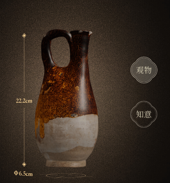 此件为辽代圆身环梁式鸡冠壶,素面无纹,壶身上半部分施有黄釉,上腹部一端有向上直立的管式短流,另一端有环梁式提柄。鸡冠壶是辽代特有的陶瓷器型,其原型为皮革所制,即“皮囊壶”,是契丹族用以盛水、酒、奶的日常用具。鸡冠壶多见于贵族墓葬,是北方少数民族契丹族的标志性用物。