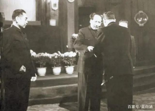 新中国成立之初,国家元首毛泽东主席接受苏联驻华大使罗申递交的国书,这是新中国元首接受的第一份国书。