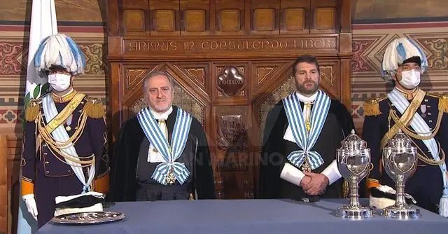 圣马力诺两位执政官吴大使从礼节上考虑,不厚此薄彼,为表示对两位执政官的同样尊重,现场他站在两位执政官面前中间点行鞠躬礼,然后递上国书。结果,左侧一位执政官先伸手接过国书,右侧的执政官笑容可掬。真是一举两得!