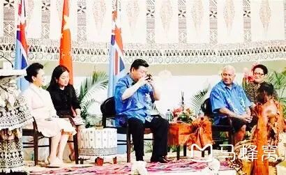 图为习主席访斐济期间接受部族首领的最高敬意仪式,为无比尊崇的贵宾献上卡瓦酒。献酒者慢步走到徐大使面前,双膝跪地,双手献给第一碗“卡瓦”。只见徐大使接过那碗黄色的浑汤,毫不犹豫地一饮而尽。索科马努总统和瓦方参礼官员立即发出一阵有节奏的掌声。献上第二碗时,徐大使接过“卡瓦“又是一饮而尽,又博得瓦方的一阵掌声。当徐大使准备迎接第三碗”卡瓦“时,礼宾司长担心大使承受不了此酒的强力,便示意献酒者转向总统献酒。
