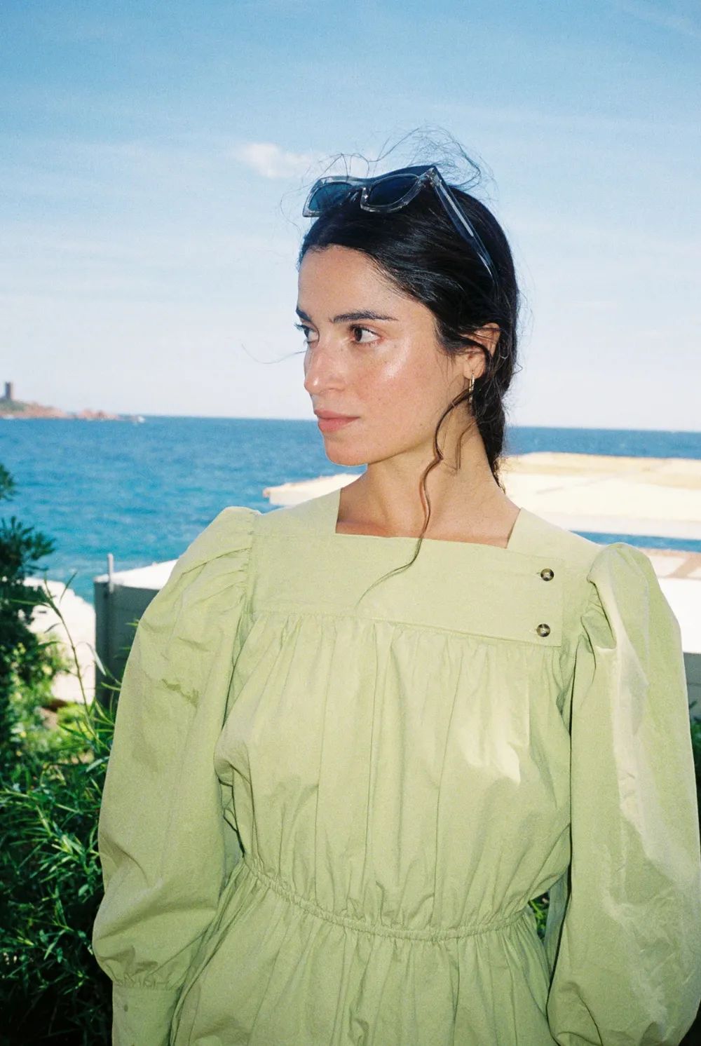 绿色的碎花裙在夏天也超适配,混搭一双平底鞋,是传说中「慵而不懒」的制造机,法式风情满满~