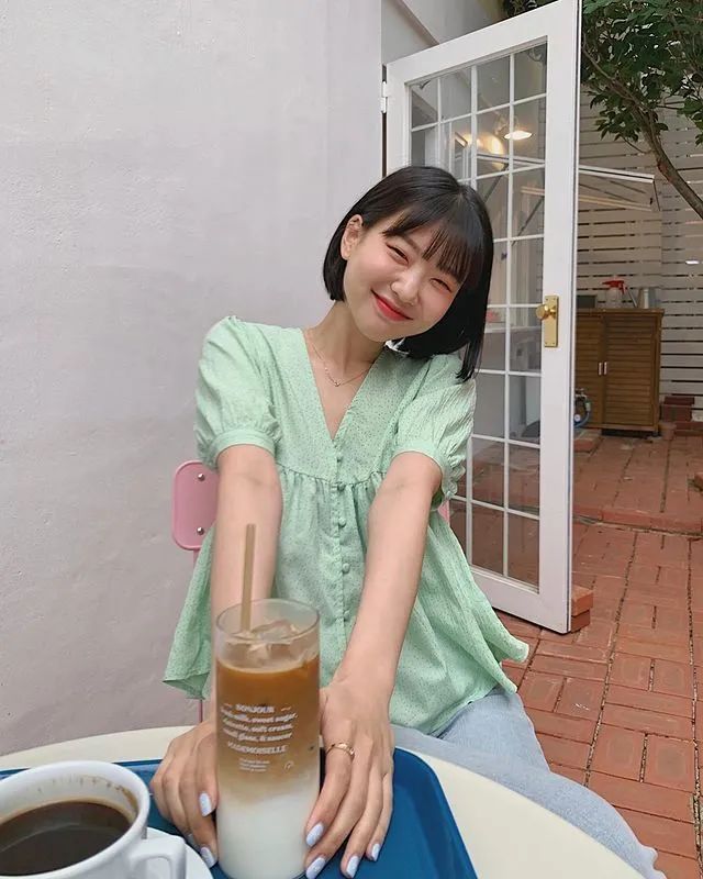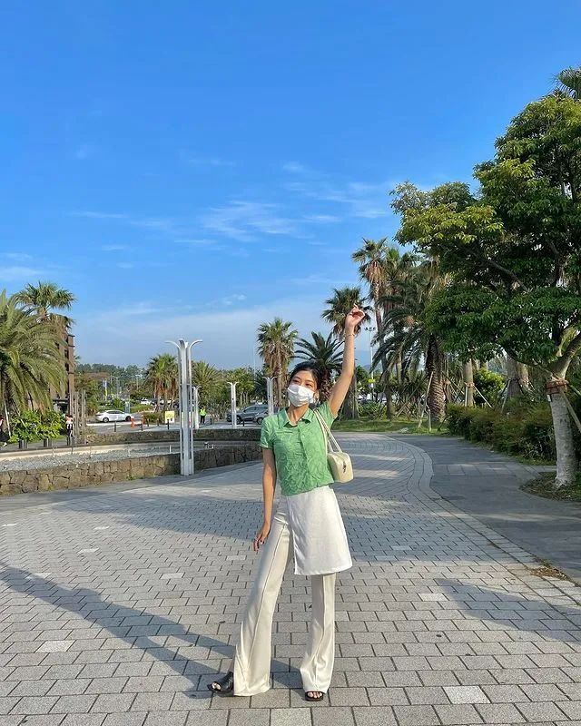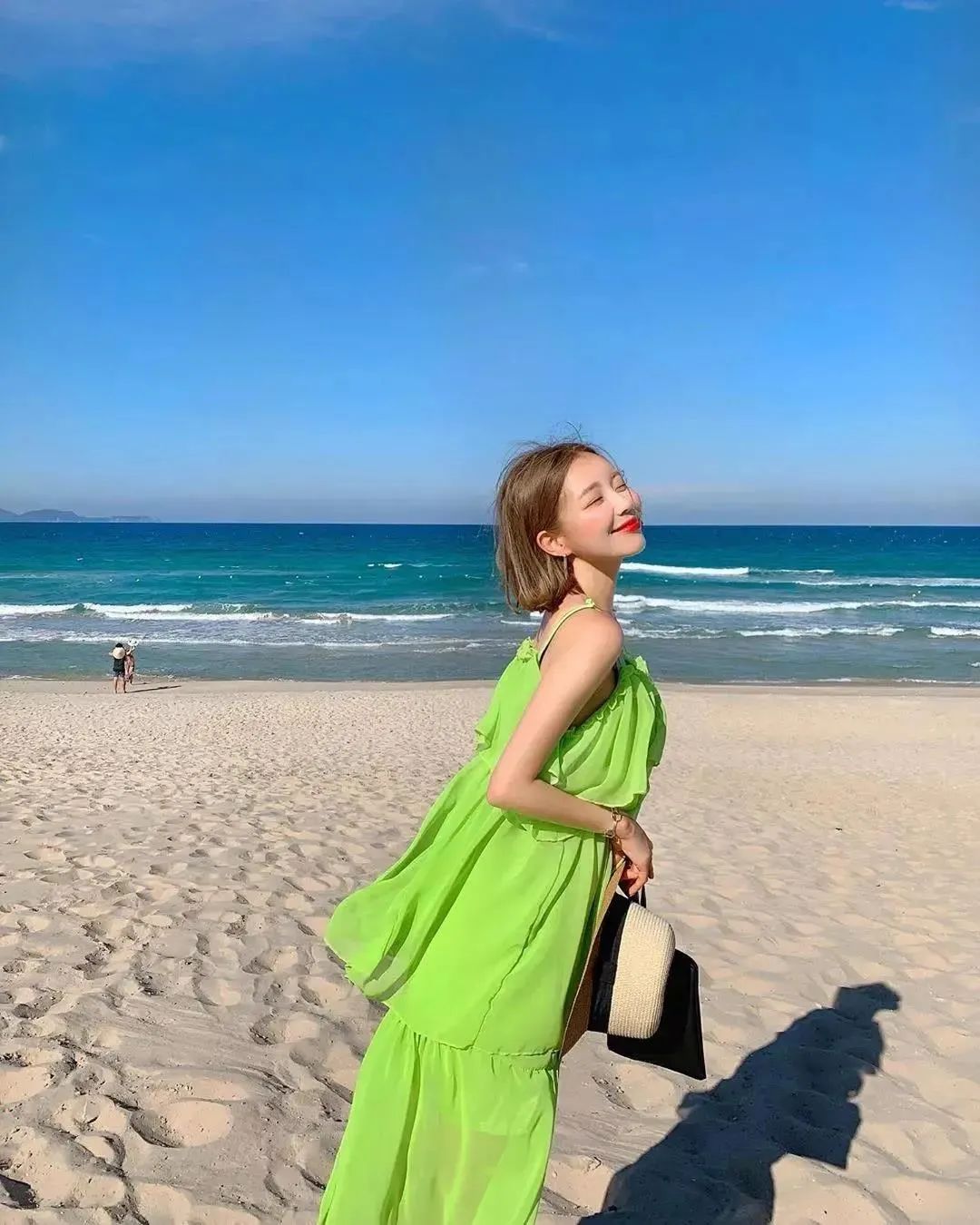 盐甜女孩姜涩琪,利用深浅不一的绿色叠穿实在太惹眼了,满满的夏日氛围感,绝美!