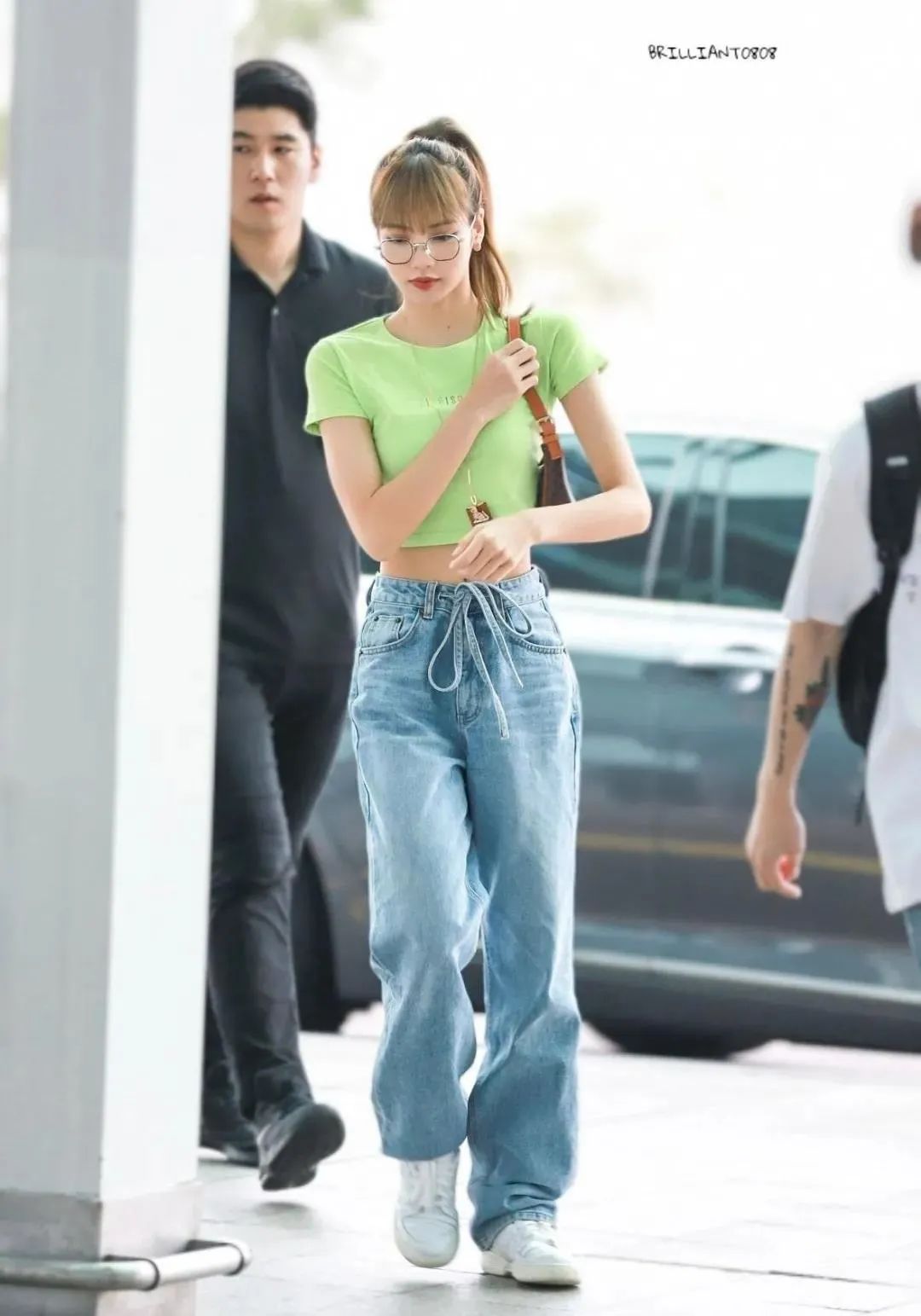 人间芭比lisa前段时间一件绿色短上衣搭配宽松牛仔,一个高马尾扎起,无敌减龄,青春活泼,满屏的夏日气息溢出。