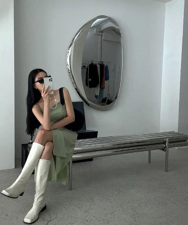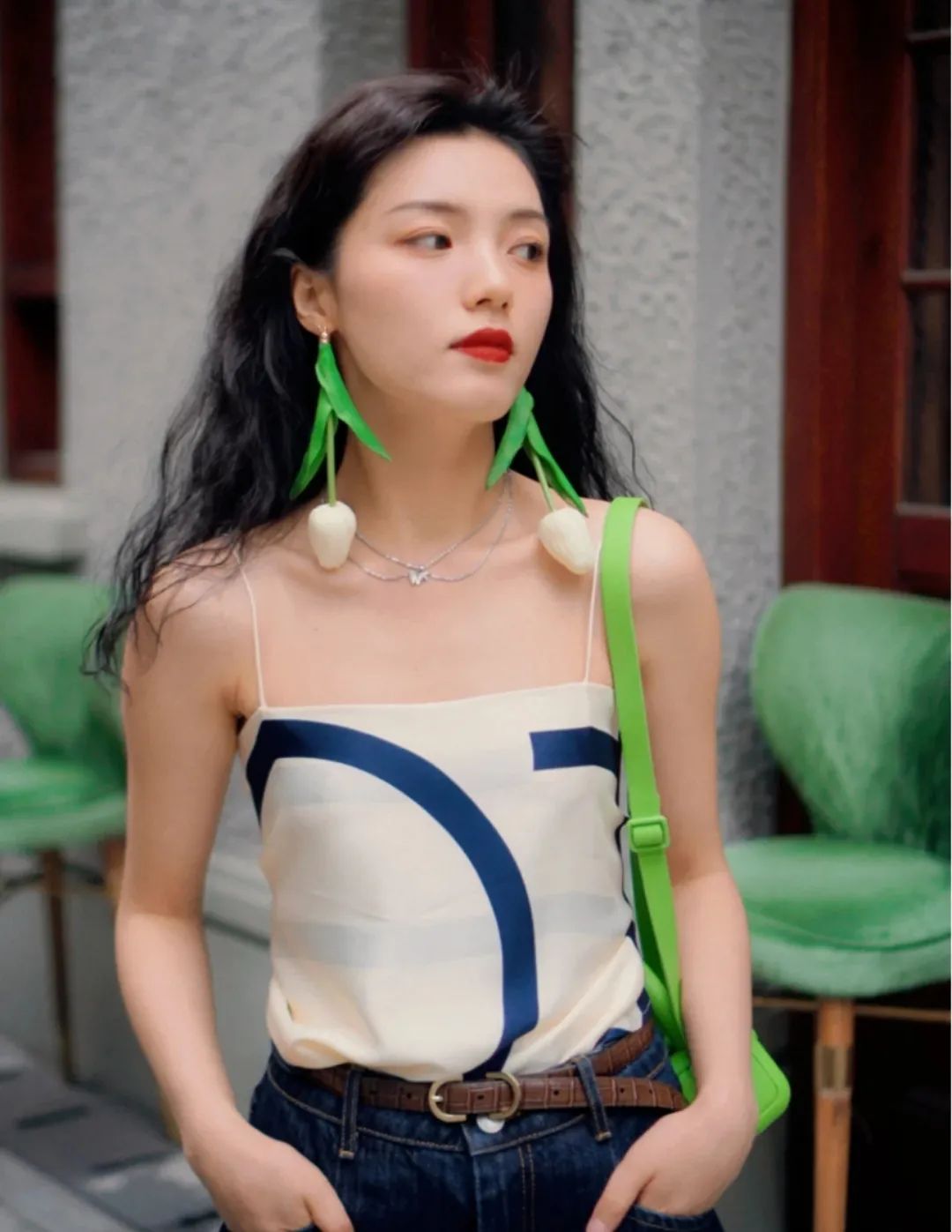 姜涩琪这条绿色缎面半裙也太适合夏天了,绿白配之间加入一点柚子色彩点缀,很有层次感,更能凸显气质温柔的氛围感!