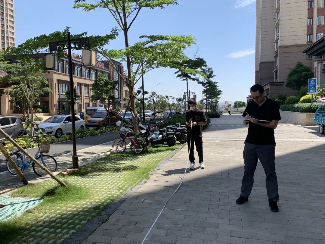 工作人员的踩点工作也迎来了不少商家、居民围观