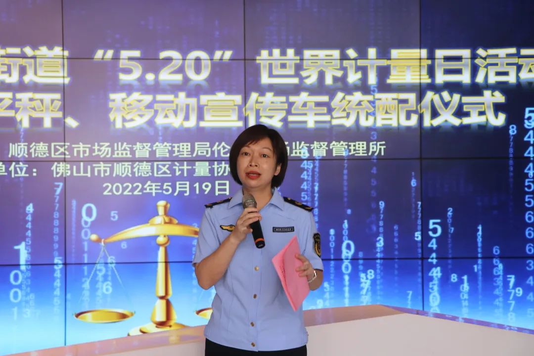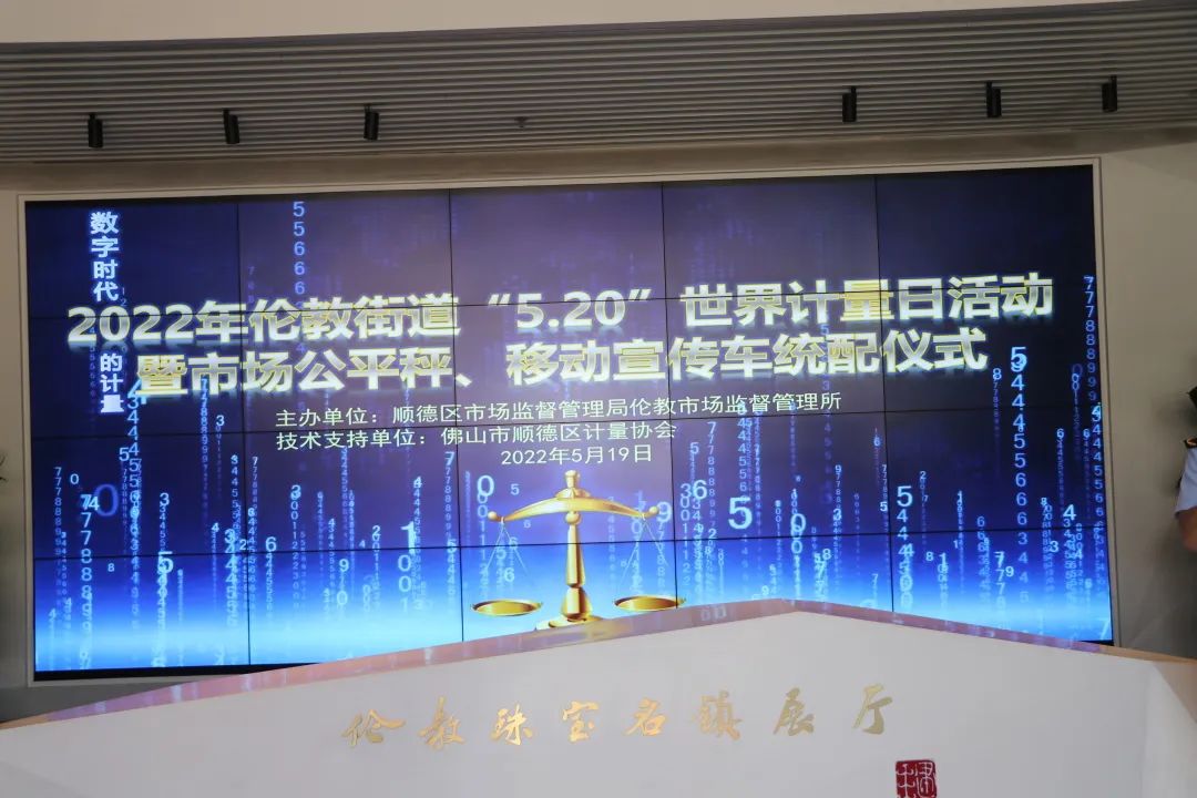 5月19日上午,2022年伦教街道“5·20”世界计量日活动暨市场公平秤、移动宣传车的统配仪式在伦教珠宝公共服务大楼举办。顺德区市场监督管理局计量科科长龚浩明、伦教市监所所长周春冰、顺德区计量协会负责人、伦教各村(社区)分管食品安全管理负责人,以及伦教街道各市场负责人等20多名代表出席仪式。