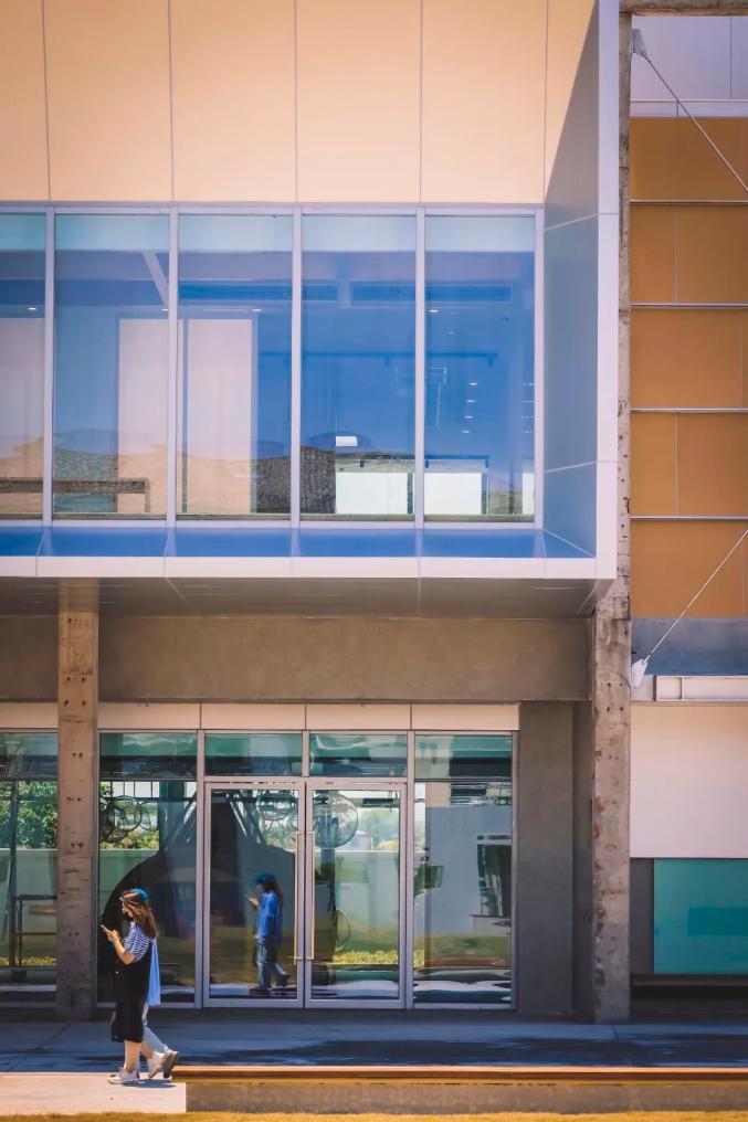 新外墙采用了与渔家蓑衣颜色相似的暖黄色披叠铝板,与阳澄湖风光自然融合。每当夜幕降临,建筑外墙散发出明亮的光芒,宛如阳澄湖畔一颗煜煜明珠。