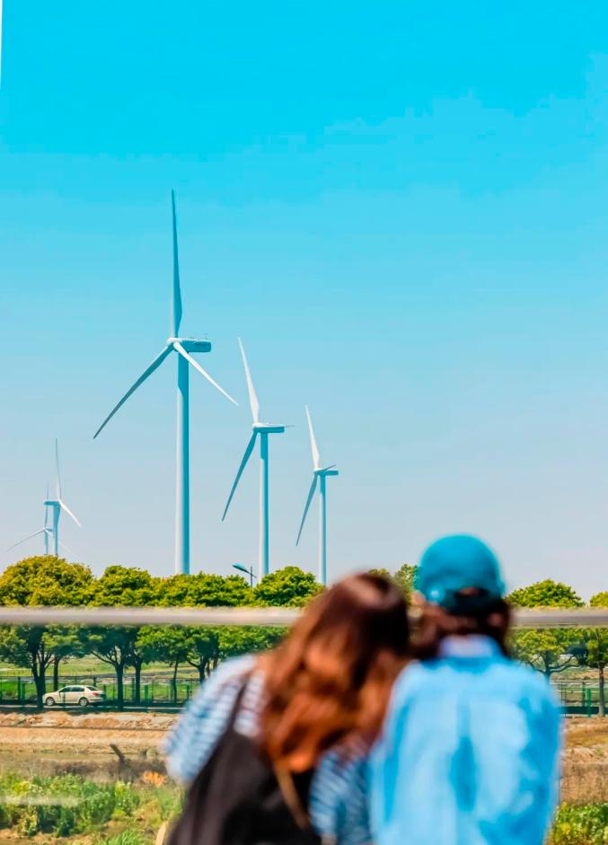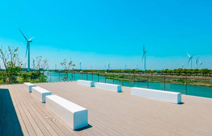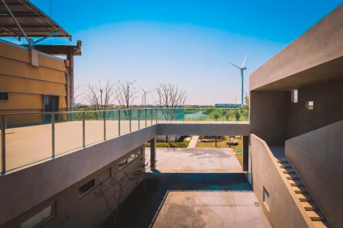 展馆二楼东西两侧,分别设有一个露台。日出之时,这里孕育着生机和希望,湖光潋滟,飞雁搏蓝空,鱼蟹自由生活在洁净的湖水里,不远处,白色风车正缓缓转动,远离城市喧嚣,顿觉舒适无比。
