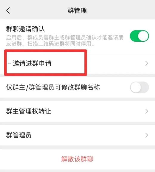 更新后,开启「群聊邀请确认」,下方就会出现「邀请进群申请」的入口