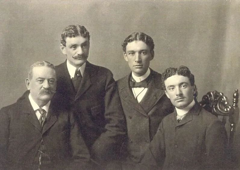 萨莉·海明斯及其子女没有留下任何肖像,这是海明斯家人最早的照片——商人威廉·贝弗利·弗里德里克·杰斐逊(左)和他的三个儿子。贝弗利是埃斯顿·海明斯·杰斐逊(萨莉和杰斐逊最小的儿子,1827年获得自由)的幼子,内战期间在威斯康辛第一志愿军团服役。战后,他回到麦迪逊接管家庭企业,运营着一家成功的餐馆。