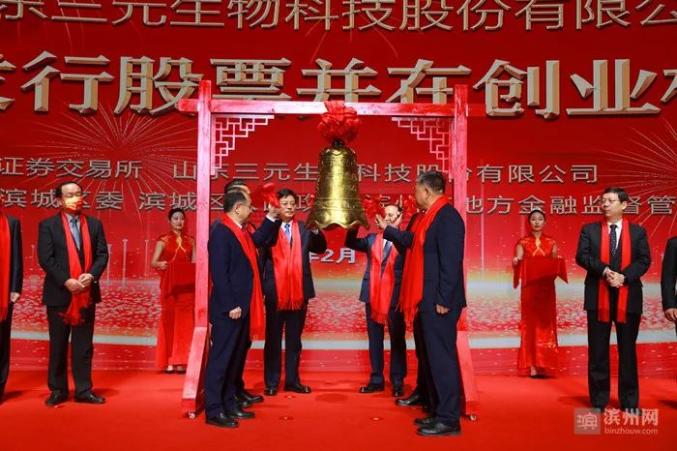 三元生物上市打响了今年滨州企业上市的“开头炮”。(李默摄影)在那,滨州市委书记宋永祥致辞说,三元生物上市打响了今年滨州企业上市的“开头炮”,必将迎来资本市场“滨州板块”的高光时刻。滨州将树牢“让企业和企业家舒服”的理念,坚持组织推动、政策拉动、基金撬动、培训引动、宣传发动、多方联动“六动并举”,大张旗鼓激励企业主动上市、勇于上市、善于上市,旗帜鲜明助力企业做大、做强、做久。