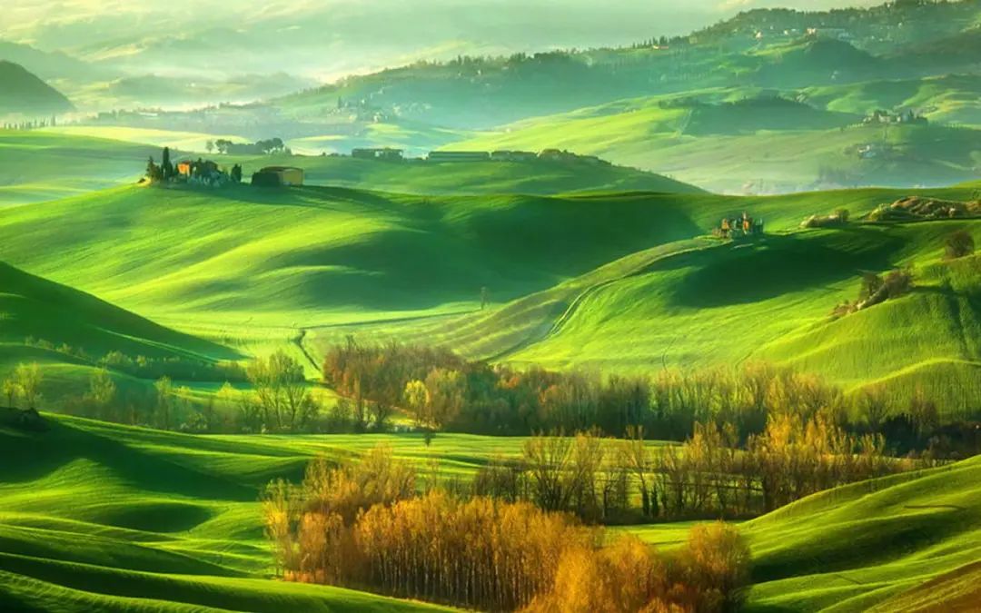 In the early spring, the ices and snows melt, the brook and stream gurgle to nourish the earth and feed the grass and tree. The wild animals are awakened from their hibernation to venture forth to prowl for their prey on the wealds and mountains, resuming the animation of the world. Warmth grows. Being caressed by the vernal breezes, the grass and tree gradually turn green, making our circumstance become tender and cozy. The vast of meadow is like a huge green blanket, on which sheep graze here and there as if being pearls scattering on the green ground. Isn’t it like a huge painting?早春时节,冰雪消融,溪流潺潺,涵养着大地,滋养着花草树木。野外的动物从冬眠中苏醒,抖擞精神,出发去寻找潜藏在旷野山林里的猎物,让世界再次恢复往日的生机。天气渐渐回暖,在和煦春风的爱抚下,草青了,树绿了,周围的环境变得温煦、舒适。绵延的草地像一块巨型绿毯,正在食草的羊群,宛如散落在绿地上的粒粒珍珠。这画面,不就是一巨幅油画吗?