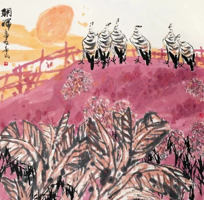 朝晖 1992年作在这样的背景下,齐辛民1992年创作出 花鸟画作品《朝晖》,并在中国美协主办的全国首届花鸟画展中获(优秀奖)本次展览最高奖。