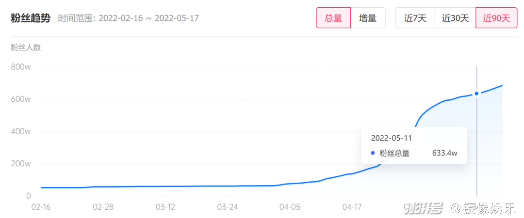 尽管眼下垫底辣孩势头正盛,但从粉丝增长数据来说,其实并不乐观。