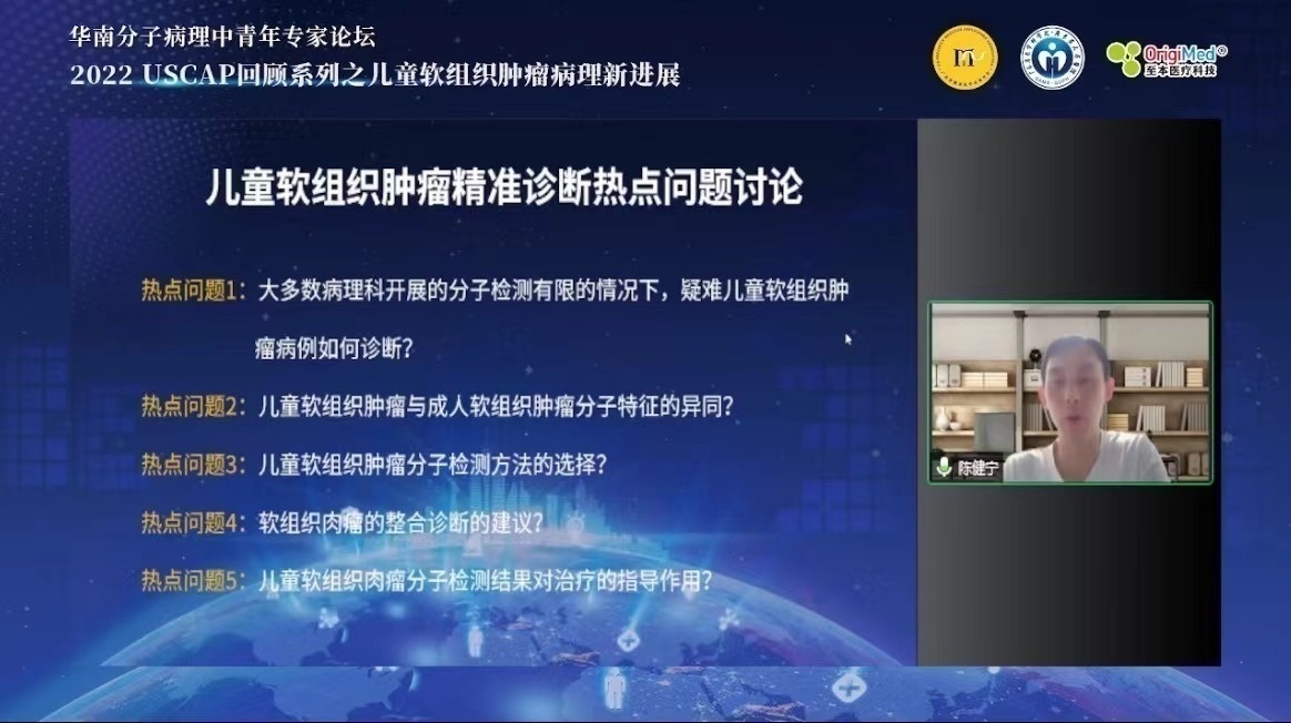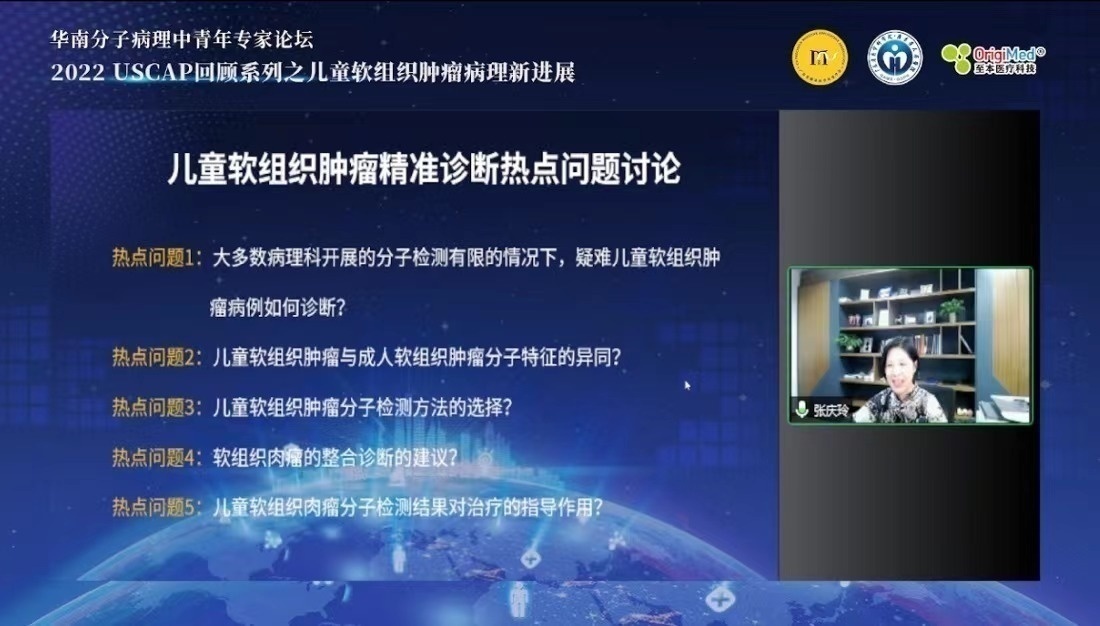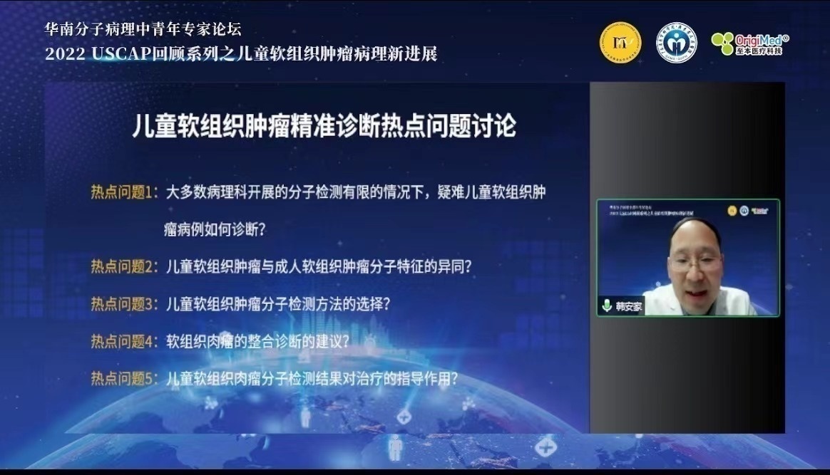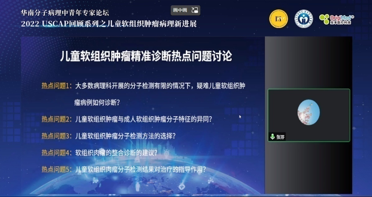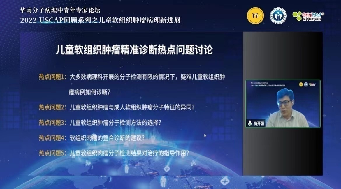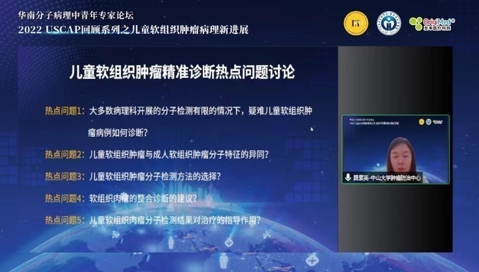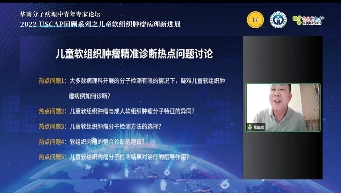 5月17日晚19点,广东省精准医学应用学会联合广东省人民医院联合在线举办“华南分子病理中青年专家2022 USCAP新进展回顾系列研讨会”,病理领域的中青年专家相聚云端,就美国和加拿大病理学会(USCAP)年会上的儿童软组织肿瘤病理新进展,进行回顾、讨论,传递最新研究信息,更新了分子病理前沿进展,内容丰富,为业界所瞩目。