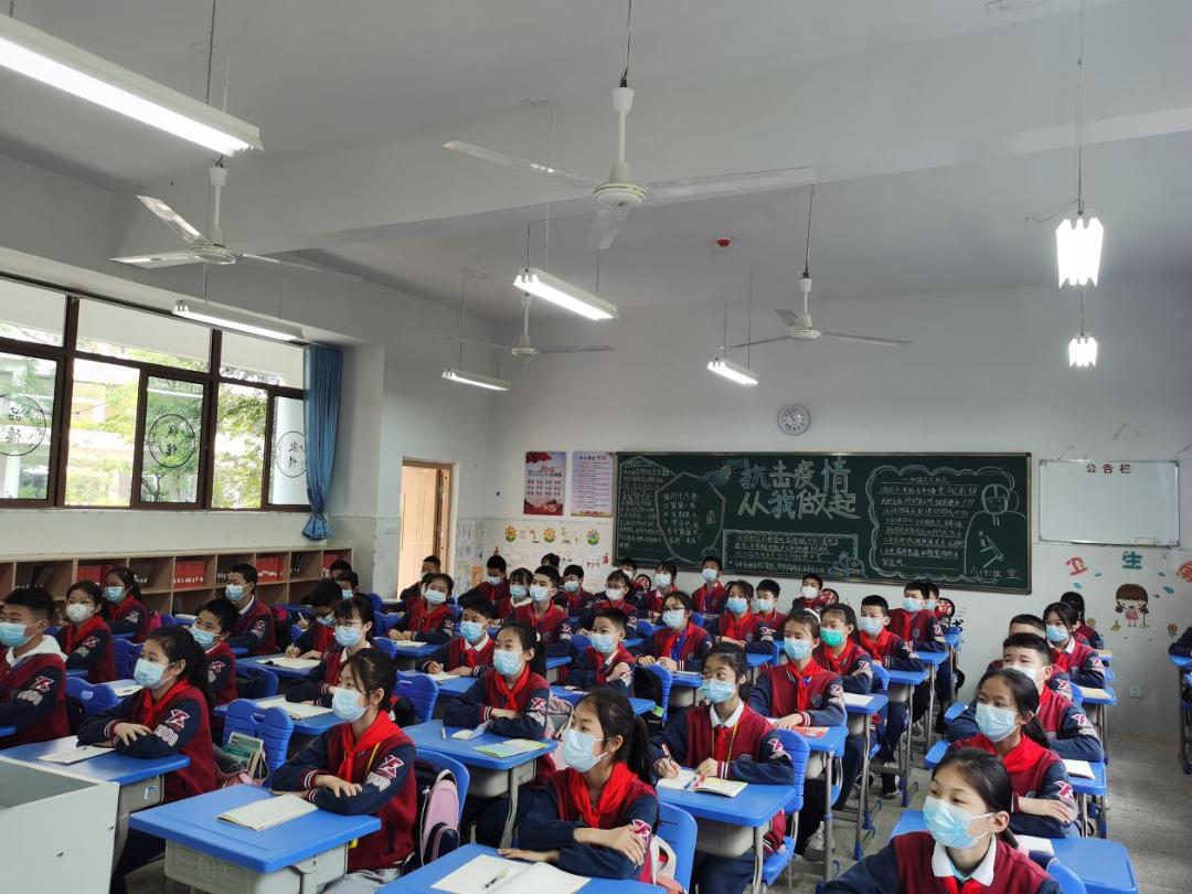复学第一课,各班在班主任分享疫情期间的经历与感受中拉开了序幕。各班围绕“感恩教育、疫情防控常识教育、健康教育、心理教育、安全教育”展开,用身边的“鲜活教材”,激扬起同学们深厚的家国情怀,使其真切感受到幸福生活来之不易。“‘开学第一课’,老师为我们讲解了新冠病毒与如何做好个人防护等知识,教室里还为同学们准备了消毒纸巾、免洗手消毒液、洗手液、备用口罩等防疫物品,谢谢老师们!”五(3)班的杨朱熠开心地说。