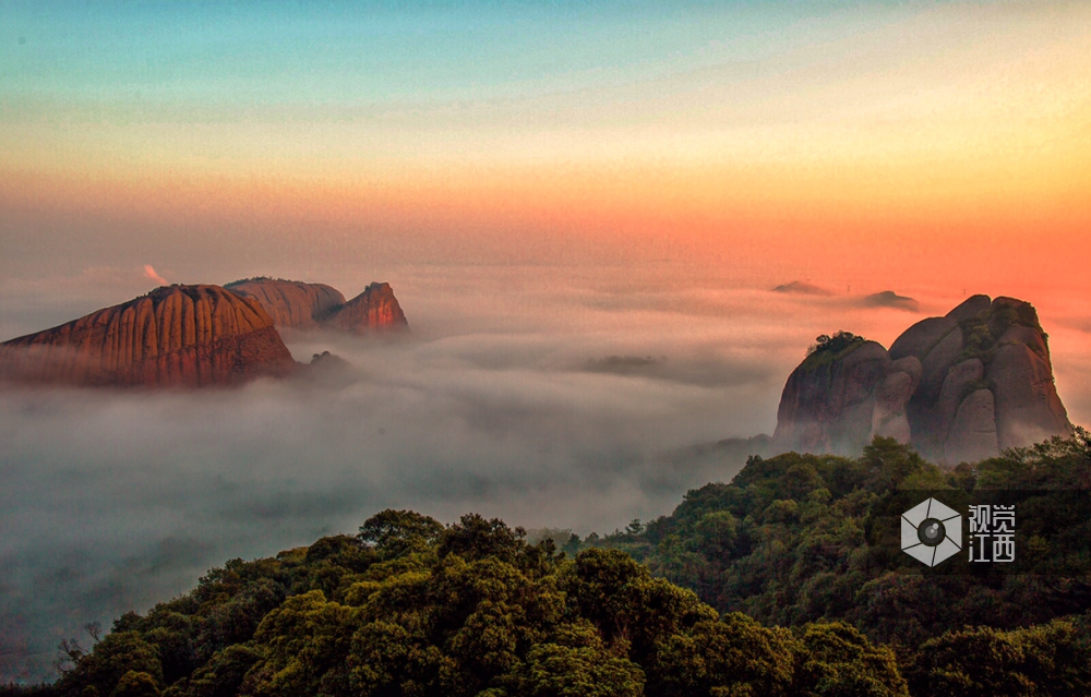 弋阳处于亚热带湿润气候,全年平均气温为18.2℃。她的年降水量为2000毫米,阳光充足,雨量充沛,十分适宜人类居住和山花草木的生长。在1580平方公里的土地上,居住着34万弋阳人,较为平坦而肥沃的土地上养育了一代又一代的弋阳人民。她有着可爱的山水。四面群山环抱,在武夷山、三清山、龙虎山、灵山之间,就有一座名山,叫龟峰,耸立在弋阳县城城南。从远处望去,整个龟峰犹如两个相互凝望的巨龟,在进行着一场跨越千年的对话。走近细看,龟峰是“无山不龟,无石不龟”,在两个大乌龟之外,又有着无数个小乌龟,他们或卧倒,或昂头,或缩首,或偎依,或嬉戏,妙趣横生,让人称奇。或许,在亿万年前,在信江河里的乌龟们就发现了这块可爱的地方,他们集体浮出水面,爬向岸边,在一片热闹嬉戏中,化为岩石,定格永久。亿万年之后,这些乌龟们以可爱的山石姿态模样,依然活灵活现的展现在世人眼前。烟雨江南,在一片薄薄的云雾中,神龟若隐若现,宛若仙山圣境。“江上龟峰天下稀”。著名旅行家徐霞客沿信江游览,到达龟峰后,发出“盖龟峰峦嶂之奇,雁荡所无”的感叹。凭借其绝世无双的丹霞地貌,龟峰先后拿到了世界自然遗产、世界地质公园和国家5A级旅游景区等响当当的牌子。山水相连。明莹清澈的山泉水,从山上欢快而下,聚成小溪,汇成河流,加起来总长近400公里,流域面积1550平方公里,占到弋阳县总面积的97.4%。发源于浙赣边界的信江河,默默无言从东向西穿城而过,浇灌了两岸的农田,养育了两岸的百姓,见证了数千年的历史变迁。弋阳县名源自水。在城区,信江河的形状貌似一个弋字。据《今县释名》记载:“县治在弋水之阳,曰弋者,以水形横斜似弋也。”