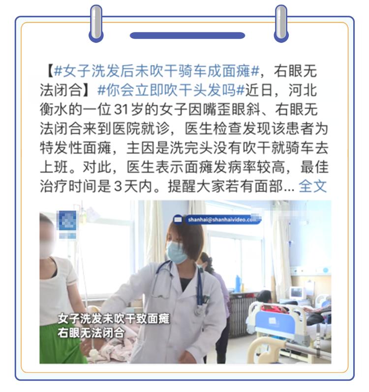 此外,湿发时一些不良的习惯也容易导致面瘫