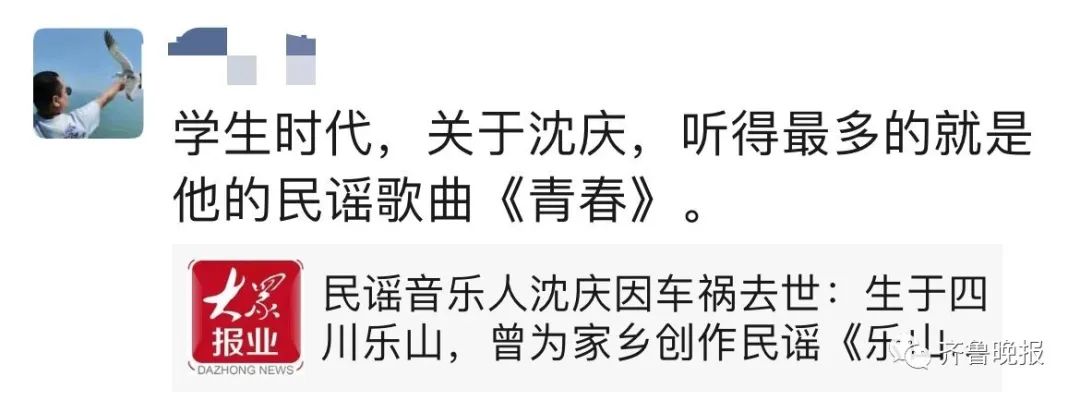 音乐人老狼发文称:“沈庆,走好。”