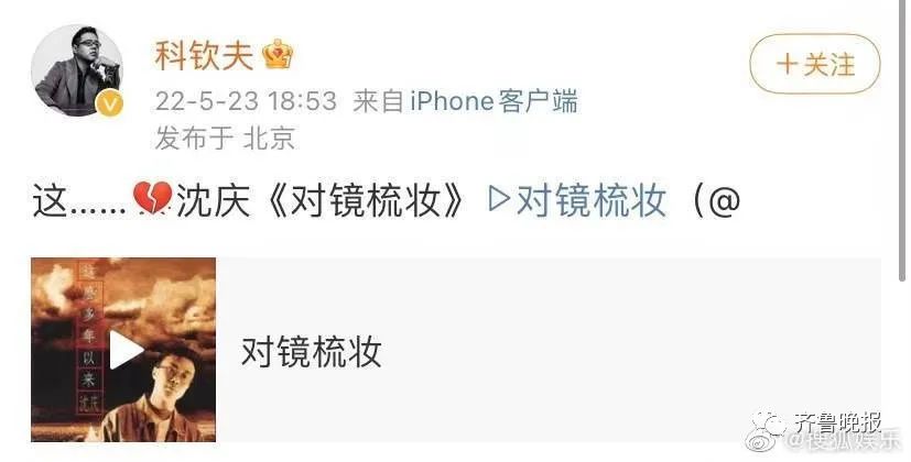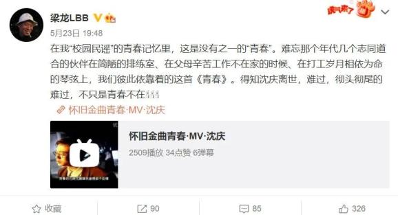 二手玫瑰乐队主唱梁龙在社交媒体上悼念沈庆: