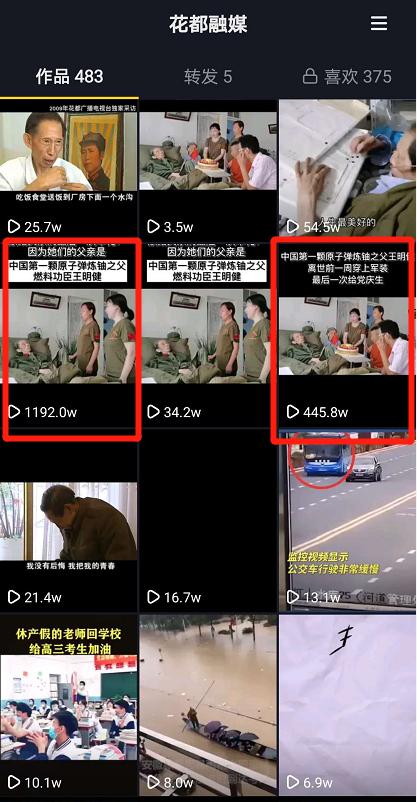 多条视频点击量超千万。