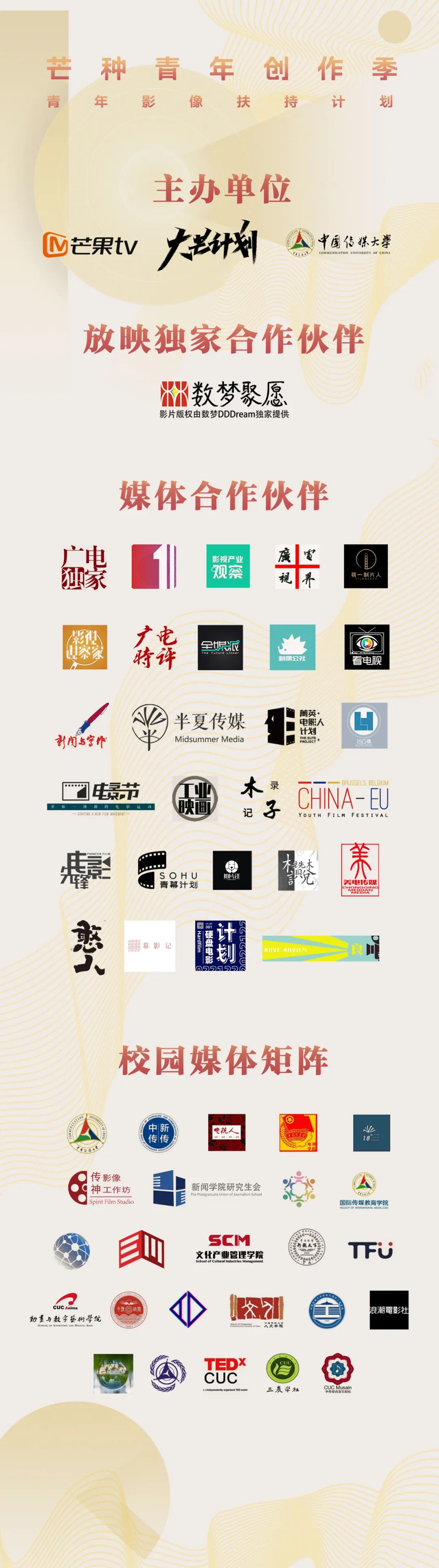 2022年5月,芒果TV大芒计划与中国传媒大学共同主办的“芒种⻘年创作季”将开展线上活动。活动分为“芒种青年短片创投会”和“芒种毕业作品扶持单元优秀作品展映及交流”两个部分。