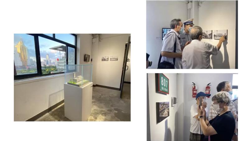就这两个小区,我分别介绍2021年的两个案例,一个是位于东昌大楼的楼道美术馆,40平方米的楼道,我规划出三个空间。有一个展品是东昌嘹望塔模型,当时是浦东第一高楼,随着陆家嘴开发,高楼越来越多,1999年被炸毁,保存下来的图片资料只有两张照片,是一个消防兵照的。消防兵还拍过其他资料,包括20张当时的街镇面貌和生活设施,例如消防训练、居民共建、老百姓理发等。我称为楼道美术馆为陆家嘴记忆楼,这次我们占据了东昌大楼的一层楼,还有其他楼层可以随着资料逐步展开回忆。