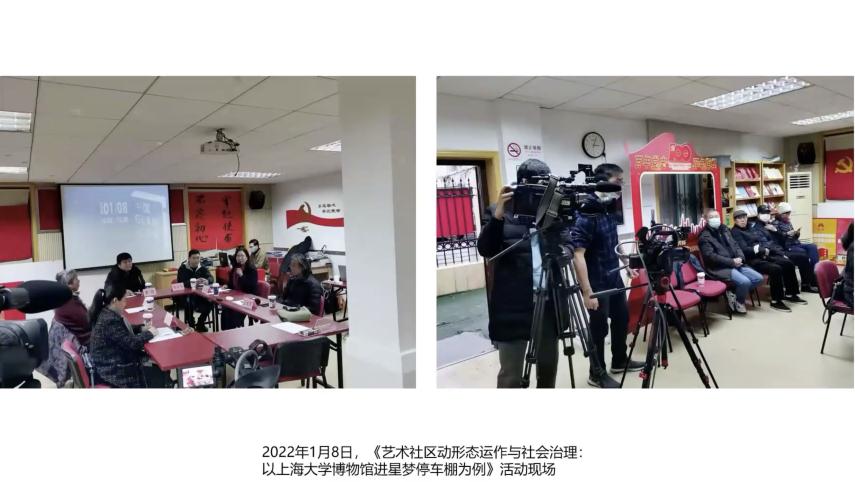 东昌新村是挨着陆家嘴最近的一个老旧小区,我们在此开展艺术家和市民共创的墙绘创作。在旧停车棚里,推出上海大学博物馆主办的三星堆展览和龙门石窟展览,这样就构成了陆家嘴老旧社区里的一个时尚和古老文化的对比,龙门石窟展览今年还有幸获得奖项。我们在展期内开展专家论坛,地点就在居委活动室,主题是博物馆与社区,由于疫情,线下便做了一个内部论坛,同时在新华网直播。2021年,我们从居委会直接入手,拉动社会资源,通过社区跟外界力量的合作,发起社区共建,而不是在社区里面自发的做展览,可见“艺术社区”逐步在我们的理论假设中成型。