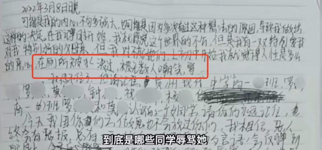 原标题:《花季女孩自杀,遗书里写下一串名字……》