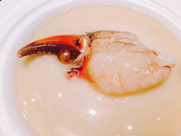 吃货们都知道,中餐里最难做的并非那些貌似复杂的菜式,而是炒青菜、或是番茄炒蛋之类的朴素菜式,最是考验厨师基本功。8餐厅的炖蛋是我迄今为止尝到最完美的一颗。望之金黄均匀,食之软滑鲜嫩,少一分则不熟,多一分则太老。这道鱼汤蛋白炖蟹钳背后,也是经过了后厨的许多次实验。鱼汤和蛋清以何种比例混合?炖多久?几时放蟹钳?这些都有讲究,当然对外也是不传之秘。