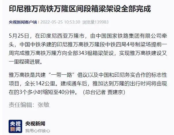 △央视新闻客户端:印尼雅万高铁万隆区间段箱梁架设全部完成